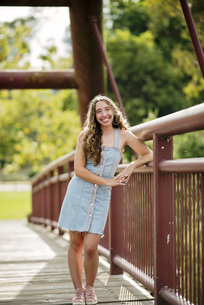 Lastly, another fun outfit idea is to incorporate their high school, new college, or an extracurricular activity that they enjoy. If they play sports, you can also bring along a ball or other equipment to use for some fun and candid shots. These are some of the most favorite shots of the entire session, for high school seniors.